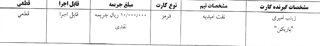 لیگ برتر فوتسال بانوان - رای کارت زرد و قرمز هفته پانزدهم به شرح زیر است: