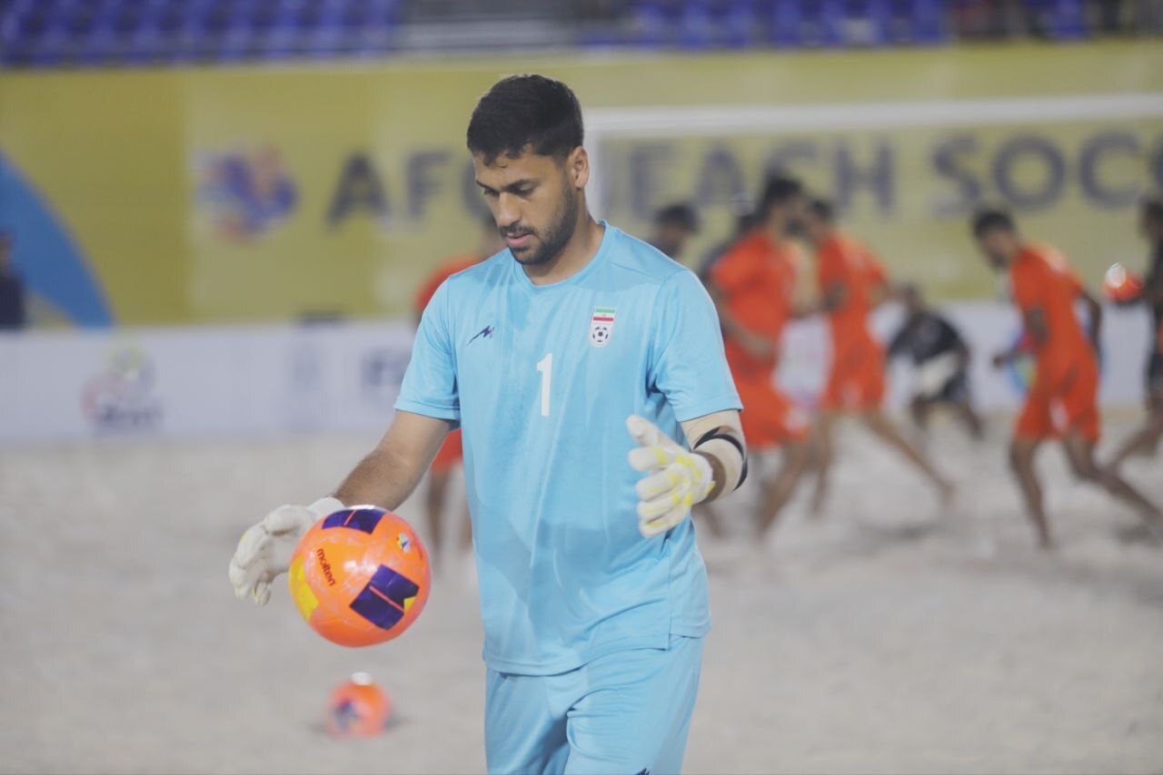 گرم کردن بازیکنان تیم ملی ساحلی پیش از بازی با عمان